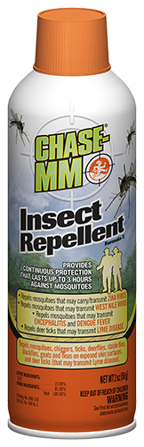 Chase-MM® Insect Repellent provides continuous protection against mosquitoes for up to 3 hours. It is also effective against chiggers, ticks, flies, gnats and fleas. Repels mosquitoes that may carry or transmit Zika virus, West Nile virus, encephalitis and dengue fever and deer ticks that may transmit Lyme disease.